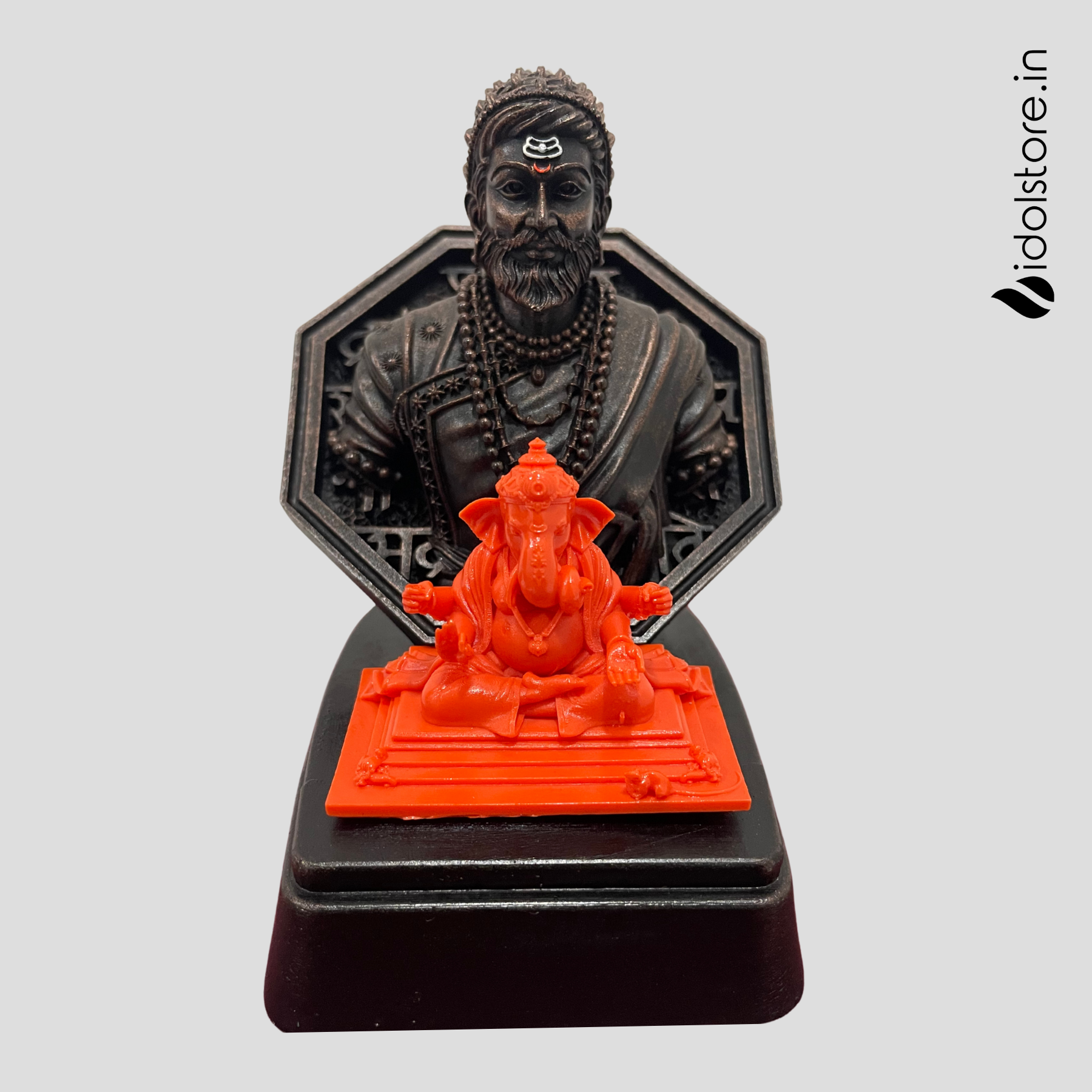 Celebrate valor, leadership, and divine blessings with this intricately crafted Chhatrapati Shivaji Maharaj Idol, featuring the iconic Rajmudra and a small Ganpati idol at the base. Made with premium detailing, this lightweight yet durable murti beautifully captures the spirit of Shivaji Maharaj while invoking the grace of Lord Ganpati.